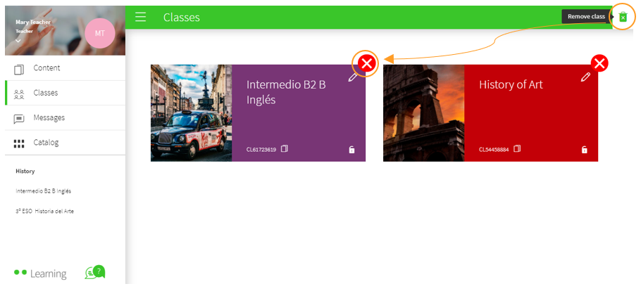 You can also delete the class if you have created it by mistake. Activate the Remove class button and click on the red X of the class you want to delete.