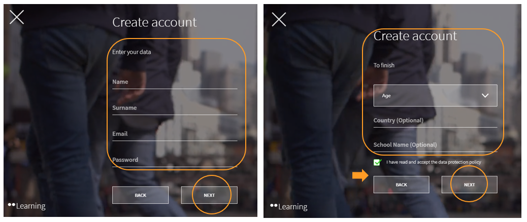 After that, you must complete the required fields in the registration form and click on NEXT . To finish, select your age (this is to know if you are of legal age), accept the data protection policy and finally click on NEXT .
