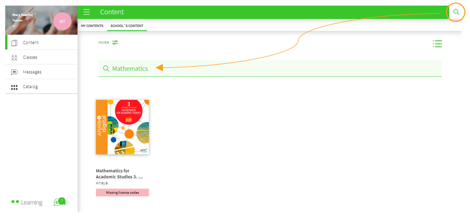 If your school has requested teacher licences from the publishers, you can find them in the SCHOOL'S CONTENT tab. If you cannot find it, you can request it to our e-mail: help@blinklearnin.com